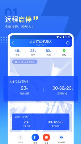随时随地都能够查看机器的运行状态,及当前所在的位置信息和清洁程度,多维度监控让管理更全面;