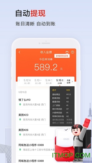 平台提供极具竞争力的配送价格,兼职骑手收入自动到账,专职骑手享受稳定薪资保障。此外,平台还设有各类奖励机制,包括高峰时段补贴、优质服务奖金等,让骑手的收入持续增长。