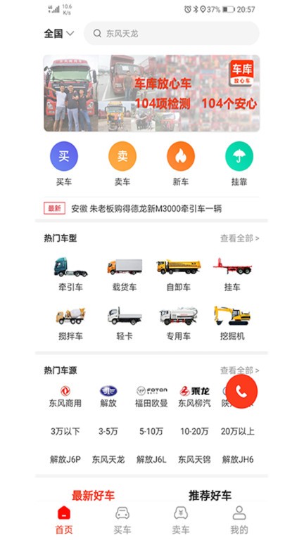 海量个人车源:平台汇聚了20000+优质车源,涵盖一汽解放、青岛解放、东风、陕汽、柳汽等知名品牌,让您有更多选择空间。