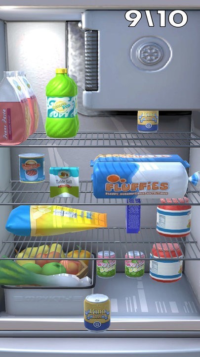 每一关开始时,冰箱中的食物都是随机摆放的,小朋友需要运用分类思维将它们归置到合适的位置。