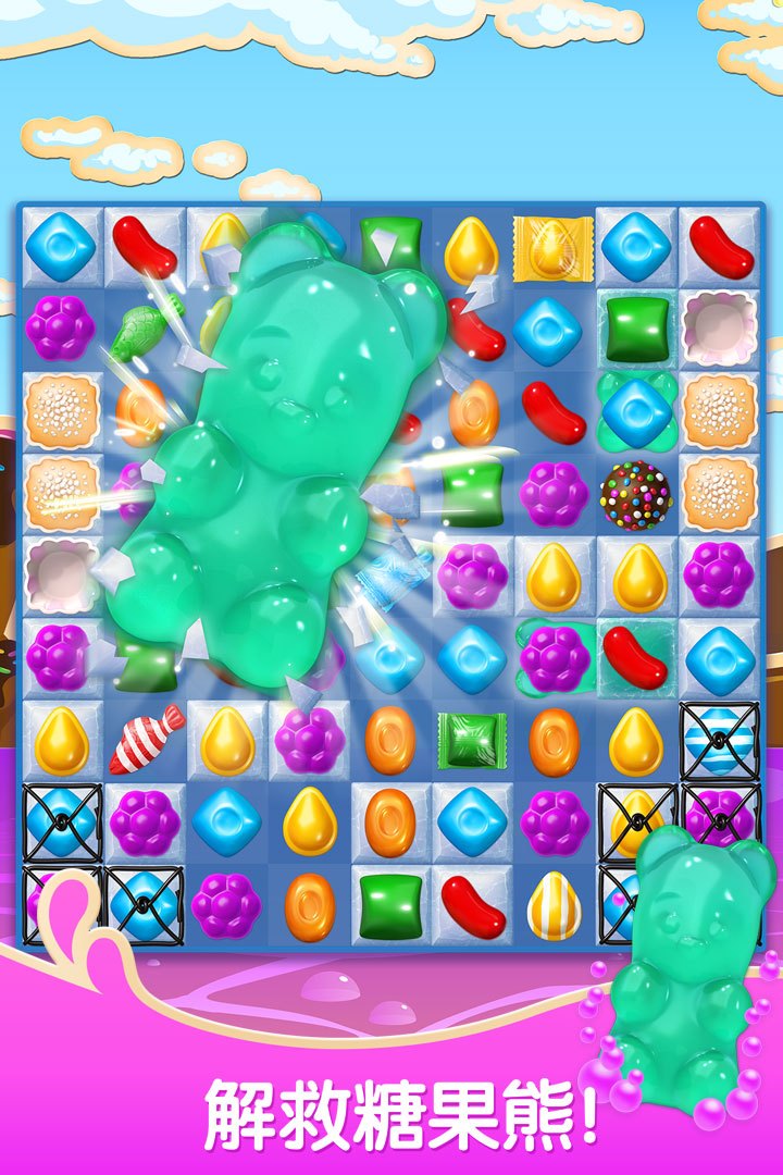 苏打模式—通过匹配苏打瓶来释放紫色苏打,体验爽快的连锁反应;冰冻模式—需要巧妙消除糖果来击碎冰块,解救被困的糖果熊;泡泡模式—需要让泡泡逐层上浮,最终解救泡泡中的小熊;巧克力和白巧克力模式—必须及时消除巧克力周围的糖果,防止巧克力扩散;蜂蜜模式—通过消除蜂蜜周围的糖果来解救被困的小熊;泡泡糖模式—需要快速消除泡泡糖上的糖果,阻止泡泡糖蔓延。每种模式都各具特色,考验玩家的策略思维和反应能力。