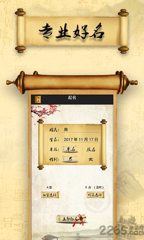 取名宝生肖取名手机版2018是一款专为新生儿父母打造的智能取名应用,它融合了中国传统文化精髓与现代科技算法,为用户提供专业、便捷且免费的取名服务。这款应用不仅能帮助父母为宝宝取一个吉祥如意的好名字,还能通过姓名学原理弥补命理缺失,让名字成为伴随孩子一生的美好祝福。目前该应用已在2265安卓网正式上线,欢迎有需要的用户下载体验!