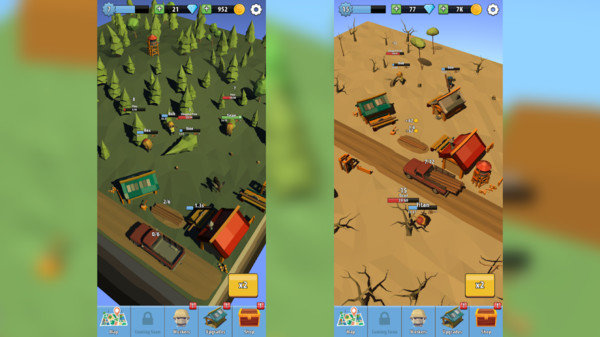 伐木工人大富豪为玩家提供了一个充满可能性的伐木世界。在这里,你将从最基础的伐木工具开始,通过辛勤劳动赚取第一桶金,然后逐步升级装备、扩大经营规模。随着游戏的深入,你可以解锁更多高级道具,在世界各地建立自己的伐木帝国。游戏画面采用清新自然的风格,色彩明亮而不刺眼,各种树木和道具的细节刻画精致,给玩家带来舒适的视觉体验。多样化的道具系统让游戏充满策略性,你需要根据不同的场景和需求,合理选择和使用各种工具。