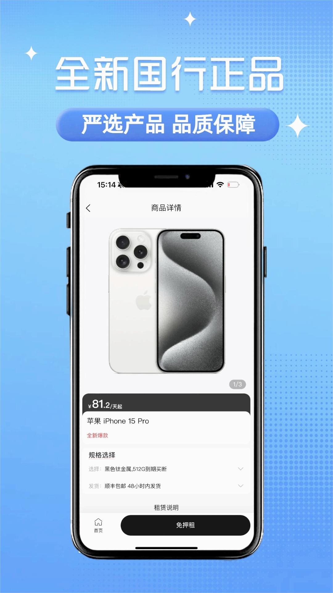 信用租机、分期租手机、租电脑、租平板、租手表、租奢侈品、租游戏机、租iPad、租无人机等商品。平台提供灵活的租赁方案,包括短期租赁和长期租赁,用户可根据自身需求选择最适合的租赁方式。所有产品都经过严格质检,确保租赁品质。