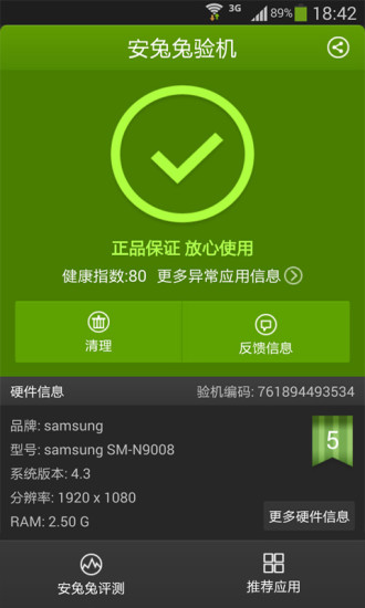 对于多数用户而言验机真伪可能是个非常专业的技术,但安兔兔将这一过程通过更简单、安全、直观的方式诠释给消费者。让消费者在购买过程中可以有效的避免假冒手机对自身财产造成侵害。建议用户在购买前和收货后都进行验机,确保手机的真实性。如果发现异常结果,可以联系安兔兔客服进行进一步确认。