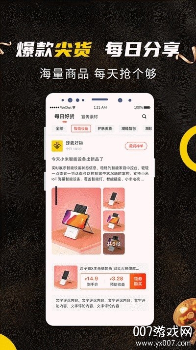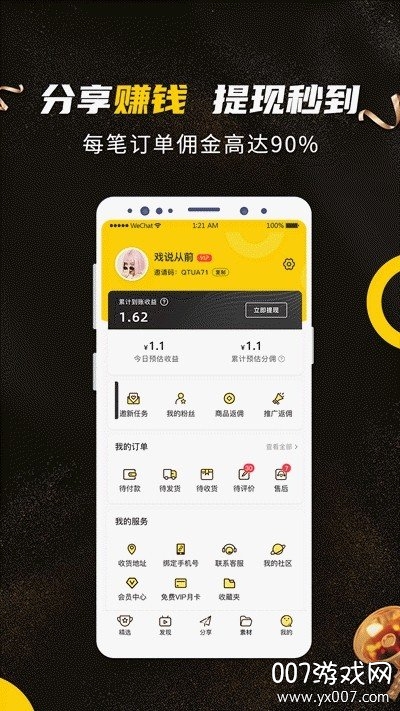 分享朋友购物,可获得相应推广佣金。完善的社交裂变机制,让每个用户都能成为优惠传播者,轻松实现被动收入。