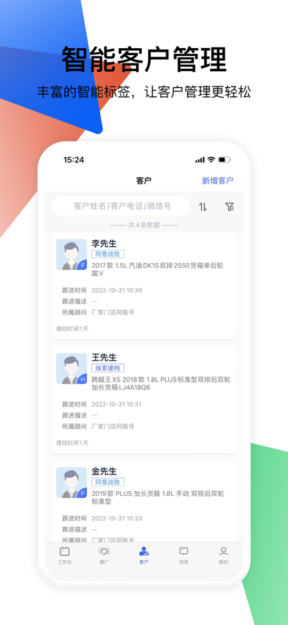 跨越行是专为汽车4S店量身定制的数字化营销解决方案,它通过移动端技术重构了汽车销售的服务价值链。该应用将传统的线下销售流程数字化,实现了从客户线索获取、报价沟通、订单确认到售后服务的全链路闭环管理。系统内置的智能算法能够自动匹配客户需求与销售资源,确保每个潜在客户都能获得最合适的服务。同时,跨越行还为经销商提供了强大的数据分析工具,帮助管理者实时掌握销售动态,做出更精准的决策。