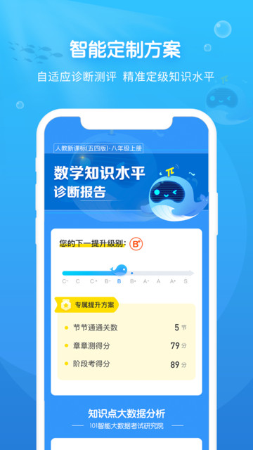 101鲸练app是101教育官网专为中小学生数学学习打造的智能在线题库平台。作为25年教育行业领军品牌101教育旗下的核心产品,它融合了前沿AI技术和大数据分析能力,为学生提供个性化、精准化的数学学习解决方案。软件覆盖小学至初中全学段数学知识点,包含海量优质题库资源,通过智能诊断、精准练习、学情追踪等功能闭环,帮助学生高效提升数学成绩。