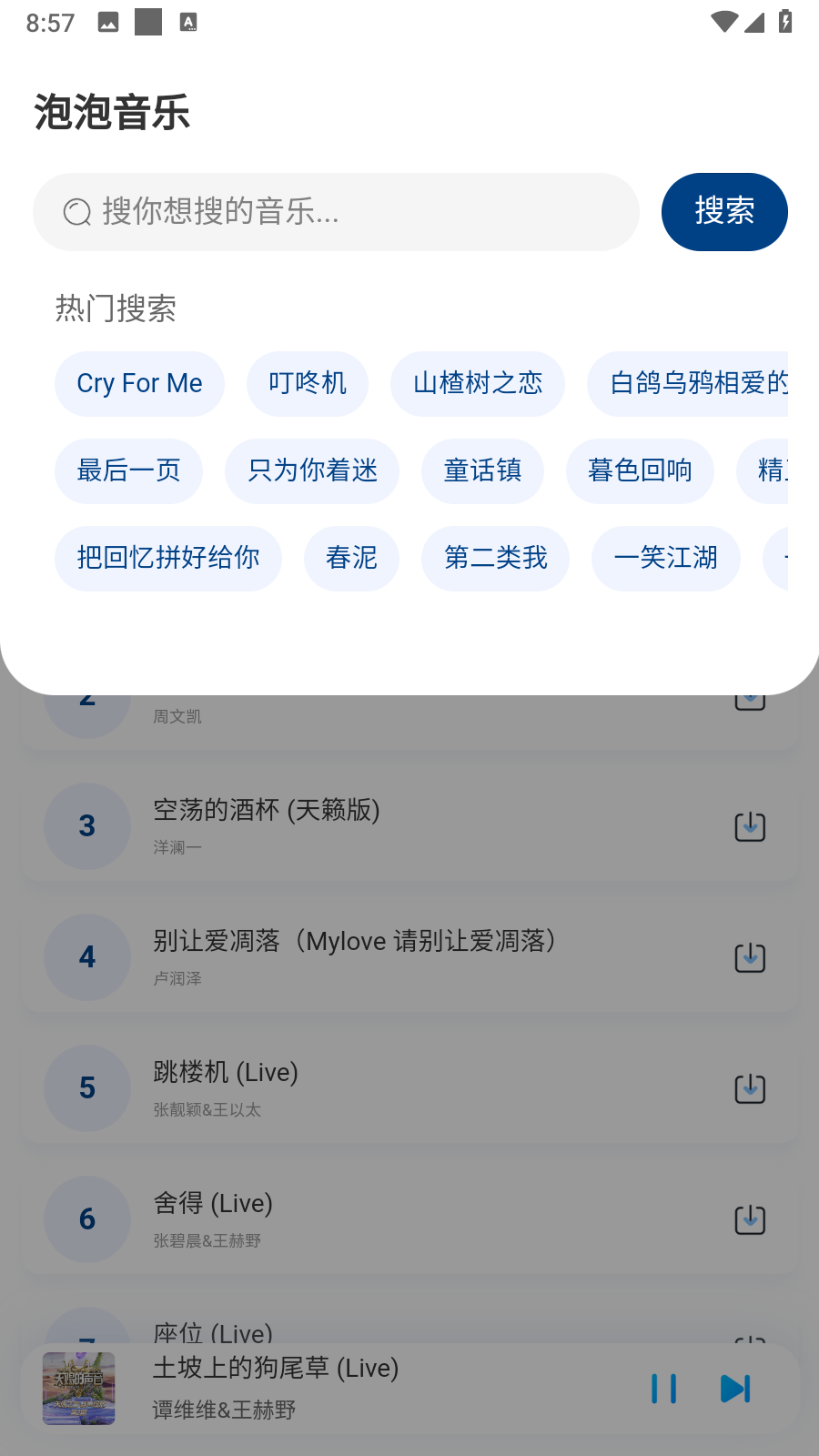 泡泡音乐App搜索功能详解