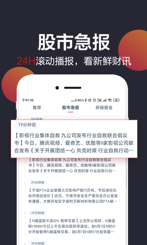 股市急报-----股市机会,唯快不破,7×24资讯实时播报,要闻坚决不错过;支持个性化订阅,只接收您关注的行业资讯;