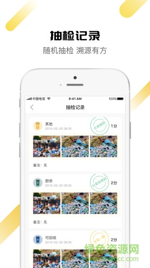 抽检记录:详细记录每次垃圾分类检查情况,展示评分结果和改进建议,帮助用户持续提升分类质量。