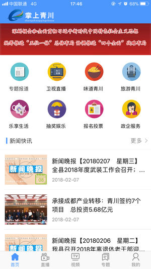 掌上青川手机客户端功能: