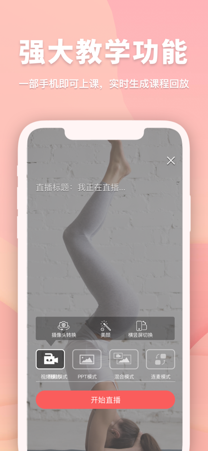 7+1种授课模式视频直播、PPT直播、画中画模式、手机录屏、电脑录屏、手写课件,高清摄像机,以及录播课上传……认真讲课的你,从未如此全能!平台为讲师提供了全方位的教学工具支持,让授课方式更加灵活多样。