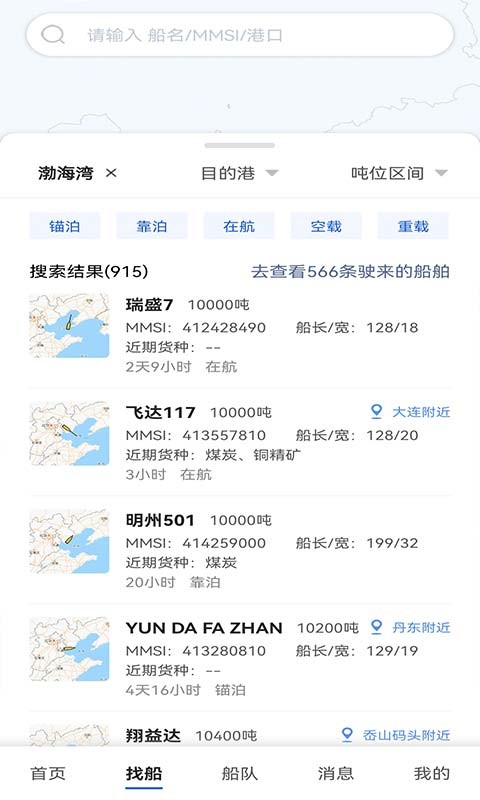 通过船名、呼号、IMO、MMSI等条件搜索船舶功能提供多种查询方式,确保用户能快速找到目标船舶。
