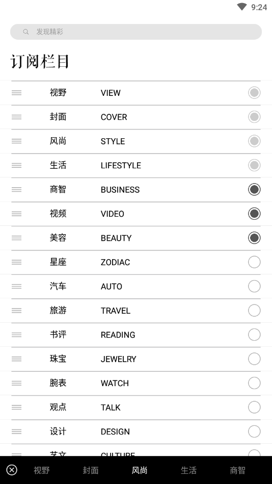 视野、封面、风尚等多元内容板块,满足不同用户的阅读需求。生活板块分享实用生活美学,商智聚焦前沿商业洞察,视频栏目带来动态视觉盛宴,星座内容提供趣味占星指南,旅游专栏展示全球精彩目的地,艺文板块汇集文化艺术精华,设计专题呈现创意灵感。此外还有观点评论、腕表鉴赏、珠宝艺术、书评推荐、汽车文化等丰富内容,打造全方位的品质阅读体验。