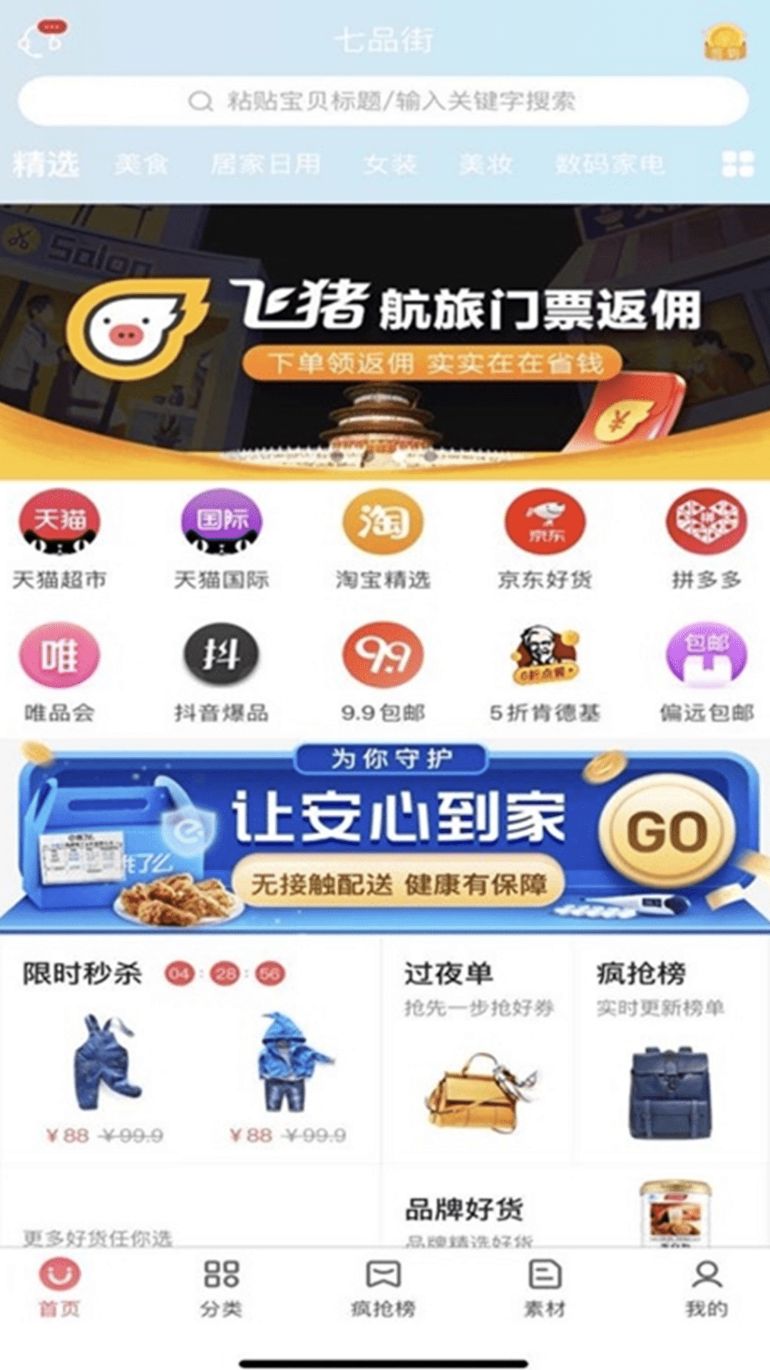 【活动】七品街每天都会推出不同类型的限时特惠活动,包括0元试用、新用户专享、品牌特卖等。平台设有专门的活动专区,实时更新各大电商平台的促销信息,帮助用户不错过任何优惠机会。每逢节假日还会推出主题促销,部分商品折扣力度可达5折以下,是囤货的最佳时机。