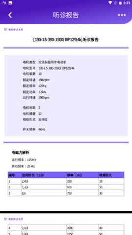 查看听诊报告,全面知道电机类型、运行转速、开关频率等数据信息,支持自定义报告模板;