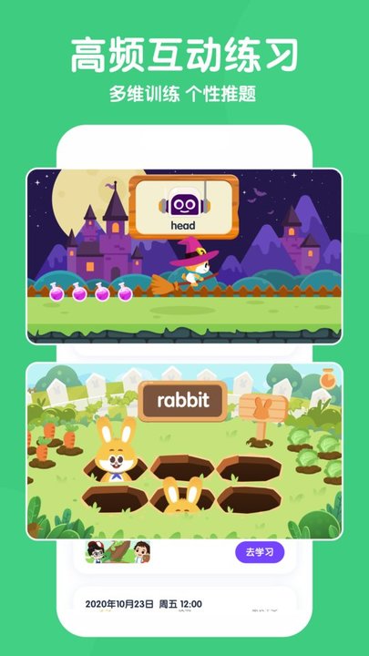 趣味学习模式:独创"冒险岛"学习系统,将知识点转化为趣味关卡。孩子通过完成语音挑战、单词拼图等任务收集星星,解锁新地图和角色皮肤,让学习充满成就感和期待。