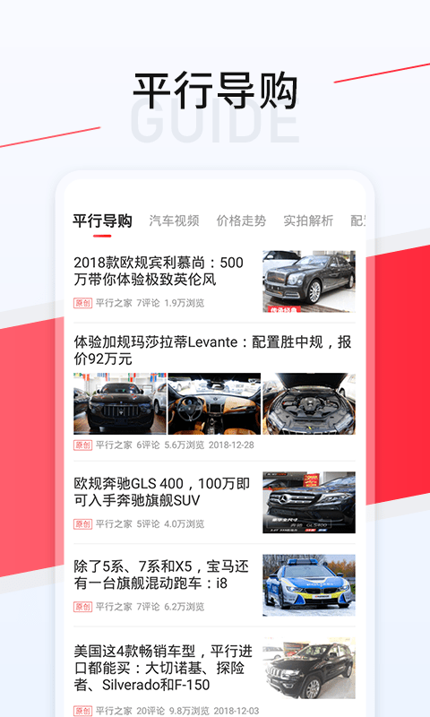 平行进口车资讯app堪称汽车界的"今日头条",专注于为用户提供最新鲜、最专业的平行进口车资讯。我们不仅提供常规的新闻资讯,更通过大数据分析,为您呈现独特的行业视角和市场洞察。作为国内领先的进口汽车资讯平台,我们与全球三十多个汽车品牌保持密切合作,确保信息来源的权威性和时效性。无论是普通消费者还是行业从业者,都能在这里获得量身定制的信息服务。平台通过导购指南、价格分析、视频评测、实拍展示、配置解析、平行百科等多元化板块,满足不同用户的个性化需求。