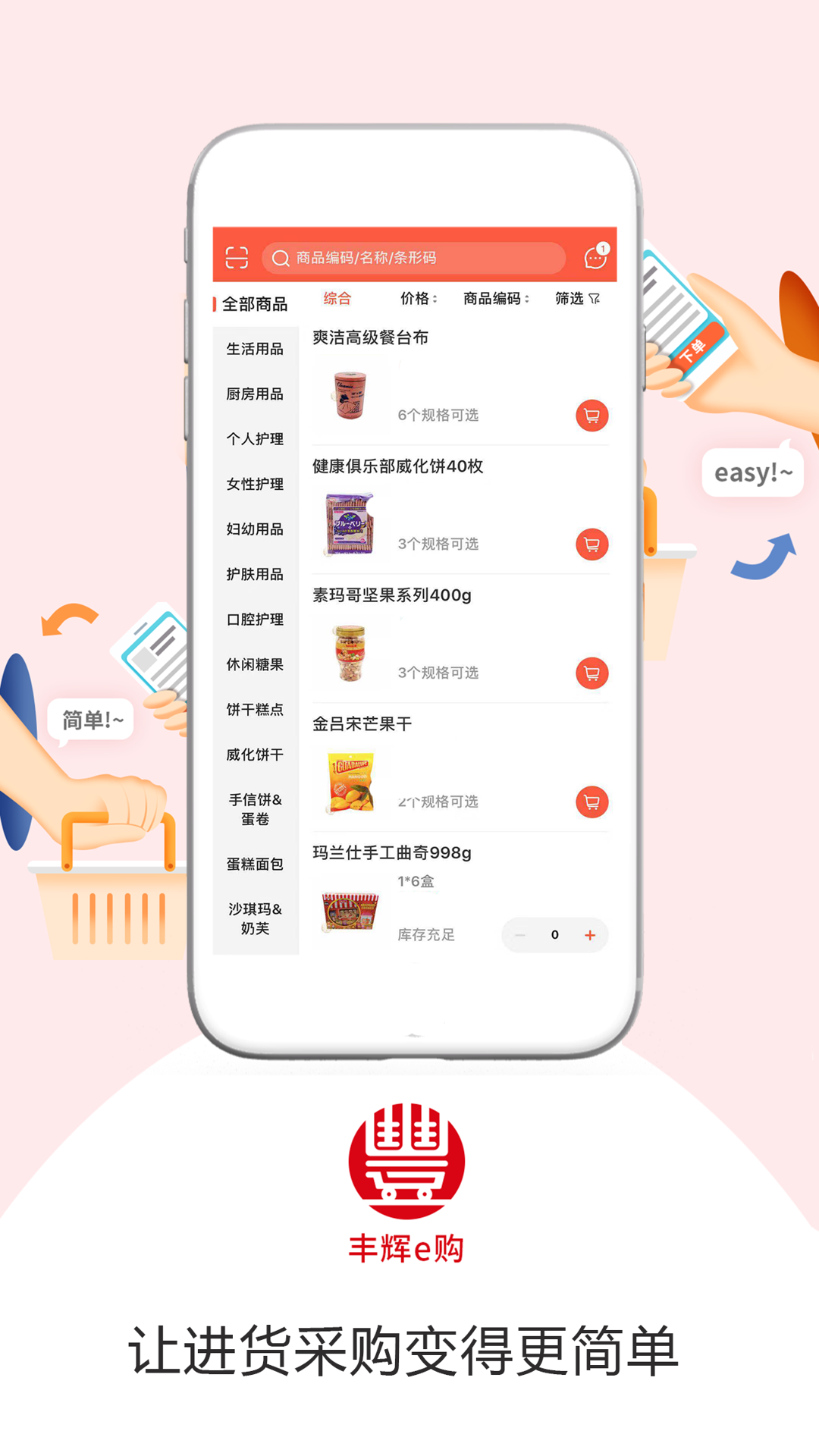 商品分类:系统采用智能分类算法,支持多维度筛选和自定义标签管理。用户可按品牌、价格、销量等条件快速定位目标商品,还能保存常用分类组合,大幅提升重复采购效率。
