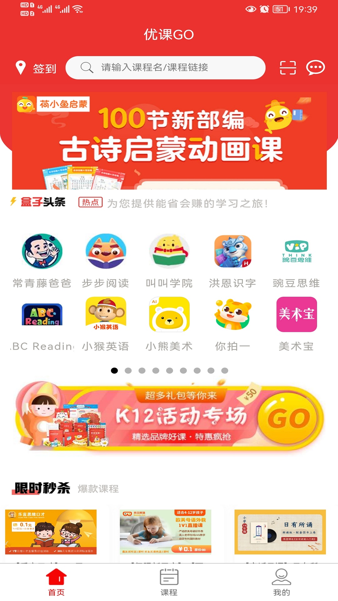 优课GOapp不仅是一个内容丰富的电子学习平台,更是现代家长的得力助手。平台整合了K12全阶段优质课程资源,涵盖语文、数学、英语等主要学科,同时提供素质拓展课程。通过智能算法分析学习数据,为每个孩子定制专属学习路径。家长还可以在社区交流育儿经验,获取专业教育建议,让家庭教育更科学有效。