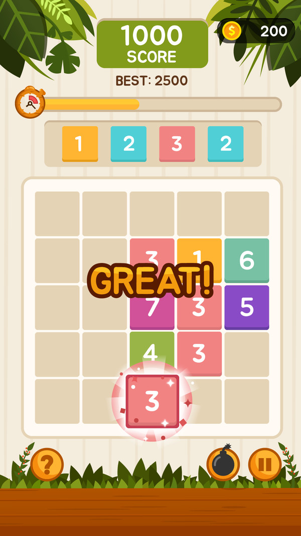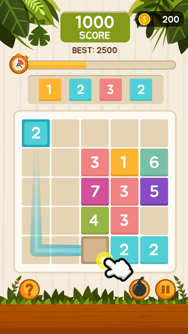 玩家需要通过点击将数字方块移动到空白位置,通过合理的布局来创造合并机会。游戏的核心玩法是连接至少三个相同数字的方块,将它们合并成更高一级的数字。需要注意的是,方块不能直接跳到另一边,玩家需要规划好移动路径。游戏设有空间限制,当游戏板上没有足够的空间放置新方块时,游戏就会结束。这种设计增加了游戏的策略性和挑战性,玩家需要谨慎思考每一步操作。