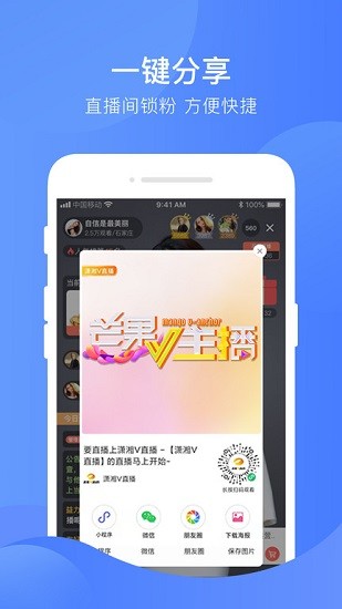 分享方式多样,支持各种程序、朋友圈等各种渠道进行分享,一键转发精彩直播片段,邀请好友一起参与互动还能获得专属优惠。