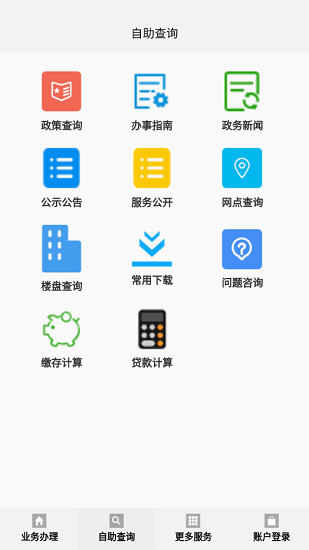政策查询,办事指南,政务新闻,公示公告,服务公开,网点查询,楼盘查询,常用下载,问题咨询,缴存计算,贷款计算,提供全方位的信息服务,帮助用户快速获取所需资讯。
