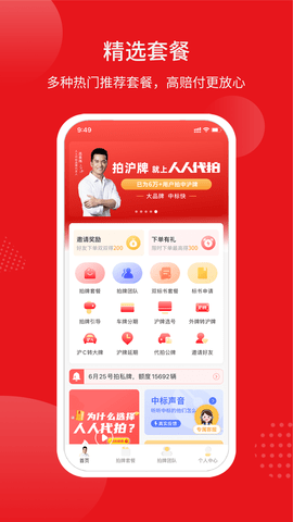 人人代拍是一款专业高效的代拍软件,致力于为用户提供便捷的车牌代拍服务。平台拥有多种热门套餐供用户自由选择,满足不同预算和需求的客户。代拍流程清晰透明,从提交订单、团队接单、等待拍牌到拍中后付款,每个环节都经过精心设计,用户可以随时查看进度,掌握最新动态。此外,平台还提供丰富的代拍团队推荐,让用户能够全面了解各团队的服务特色和优势。无论您是首次参与车牌拍卖的新手,还是经验丰富的老用户,人人代拍都能为您提供贴心的服务。快来体验人人代拍,轻松搞定车牌代拍难题!