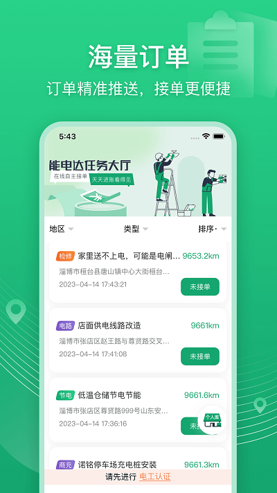 能电达app是一款专为电力服务行业打造的智能应用平台,为电工师傅和用户搭建了高效便捷的服务桥梁。该软件整合了全国范围内的电力服务资源,提供从线上下单到线下维修的全流程解决方案。电工师傅可以通过平台实时接收附近订单,利用智能导航系统快速抵达服务地点。同时,用户能够享受到专业、安全的电力维修服务,平台严格审核电工资质,确保服务质量。无论是日常电器维护还是紧急电力抢修,能电达都能提供及时可靠的服务支持。