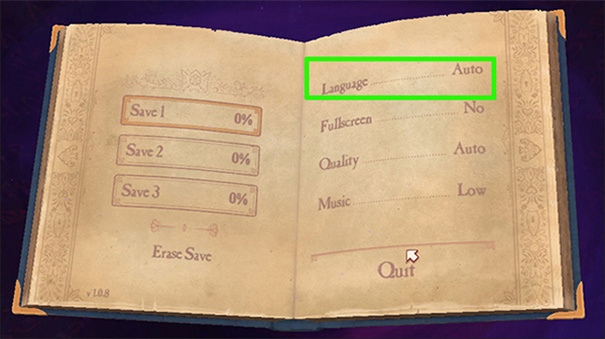 这里需要玩家点击绿色方框内的language一栏的选项更换中文(鼠标左、右键可以来回切换语言);