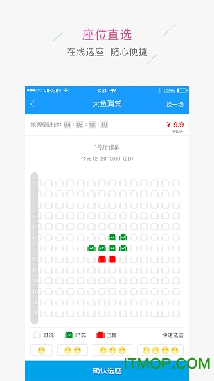 直观的影院座位图展示,支持在线选座功能,让您轻松挑选最佳观影位置