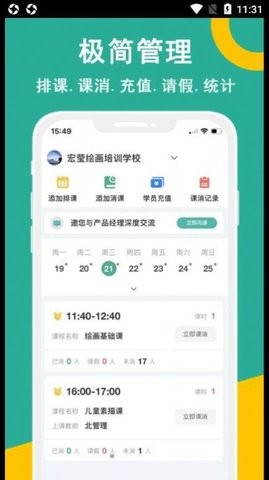 培训起来更加的便捷,你可以在上面获取到比较好的管理体验,系统支持移动端使用,随时随地处理教务工作。消课时什么的推荐提供的很完善,专业教学管理资源推荐给你,自动生成课时消耗报表,避免人工计算误差。人人都可以在线获取到比较好的教学管理体验去感受一下,系统采用云端存储,数据安全有保障。