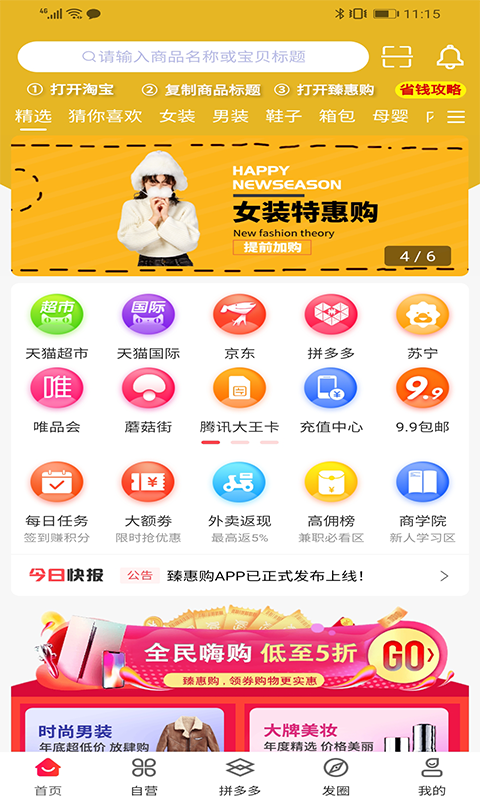 通过深度整合淘宝、京东、拼多多、唯品会、蘑菇街等国内主流电商平台的商品资源,我们打造了一个超级购物平台,真正实现了全网优惠商品一站购齐。无论您习惯在哪个平台购物,臻惠购都能为您提供最优惠的价格和最便捷的服务。