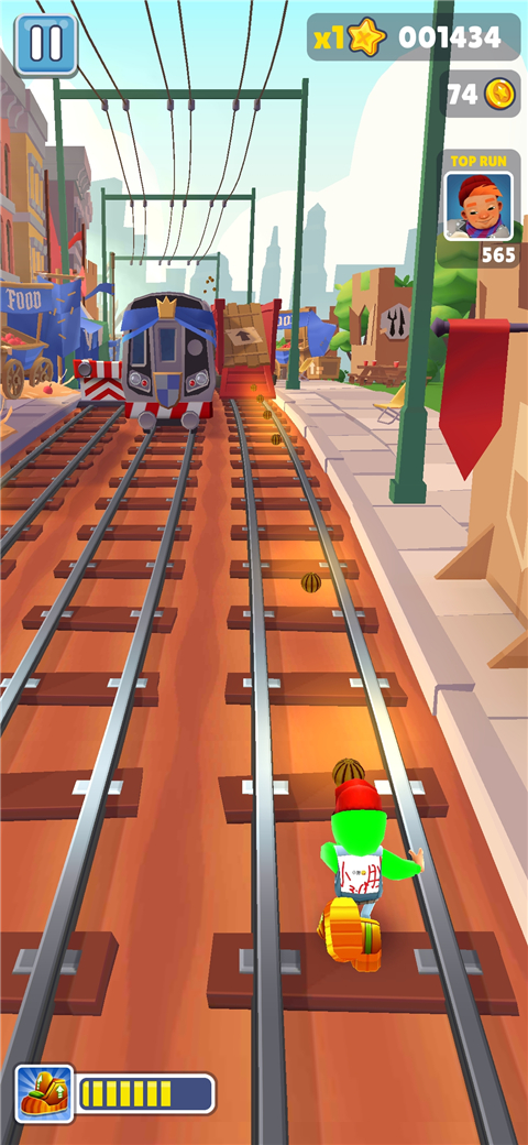 游戏采用积分累计制,每次跑酷的分数都会计入个人最高纪录,分数越高获得的金币奖励也越丰厚,这些金币可以用来购买各种实用道具。