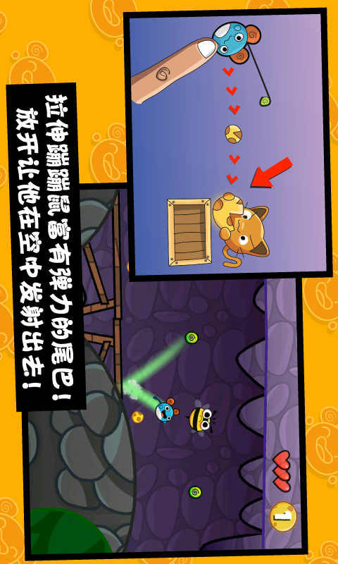 《蹦蹦鼠》最引人入胜的亮点在于其独特的物理弹跳玩法。玩家需要精准控制力度和方向,让蹦蹦鼠通过弹跳悬挂在各种挂钩上,这种创新的操作方式带来了前所未有的游戏体验。游戏共设置了46个精心设计的关卡,分布在5个风格迥异的世界中。在冒险过程中,蹦蹦鼠不仅要面对复杂的地形挑战,还要躲避蜜蜂针刺等危险障碍。玩家还能体验到抓住魔法悬挂栓的奇妙感觉,甚至可以从大鸟身上弹跳而过。整个冒险旅程充满惊喜,在寻找"大芝士"的过程中,蹦蹦鼠还能收集到大量普通芝士,这些收集要素大大增加了游戏的可玩性和重复游玩价值。