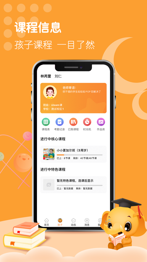 课程信息:系统会详细展示孩子每周的课程安排,包括上课时间、地点和任课老师等信息,让家长对孩子的学习计划了如指掌。