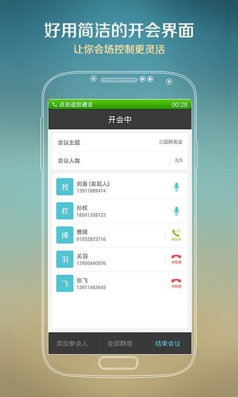 《随行议》采用全新的电话会议系统,通过技术创新实现了更高效的沟通体验。管理人员只需在简洁友好的操作界面中一键发起会议,系统会自动呼叫所有参会人员的联系电话,省去了繁琐的拨号过程。软件还提供强大的会议管理功能,让您随时都能快速组织会议。特别值得一提的是,清晰直观的联系人界面设计,让会议组织变得轻松又高效。
