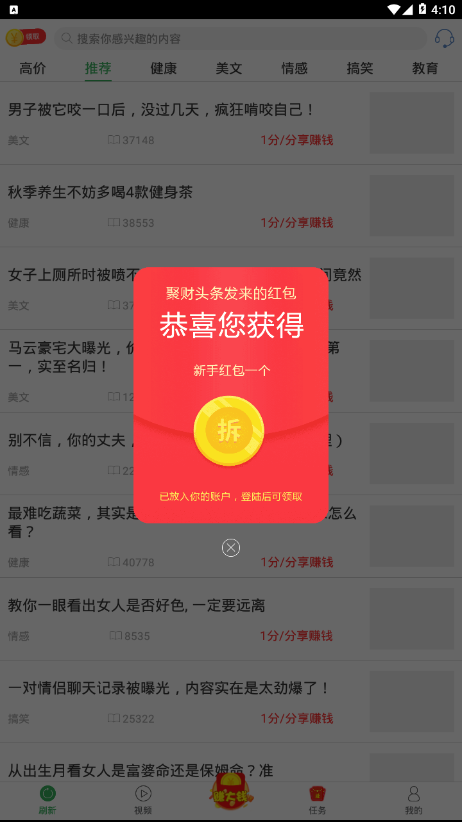 聚财app是一款集资讯浏览与收益获取于一体的创新应用,为广大用户提供了简单便捷的赚钱方式。这款应用通过阅读文章、观看视频等轻松方式就能获得收益,每天完成指定任务还能领取额外金币奖励,真正实现了娱乐与收益双丰收。