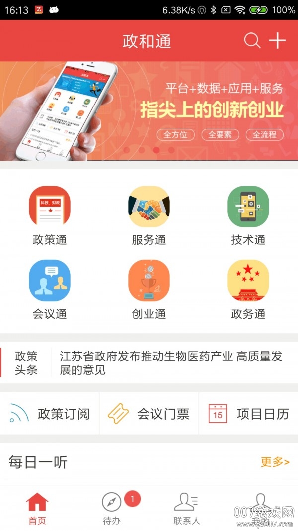 政务通:提供政务快捷办理通道,整合通知公告和调研信息