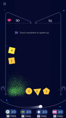 这款游戏颠覆了传统打砖块游戏的玩法模式,创造性地采用了由上至下的重力系统。玩家需要通过手指滑动来控制弹球发射方向,利用物理反弹原理来消除各种彩色数字砖块。游戏画面简洁明快,操作简单易上手,但想要精通却需要一定的技巧和策略。随着关卡的推进,玩家将面临越来越复杂的砖块排列和机关陷阱,需要灵活运用各种弹射技巧才能顺利通关。