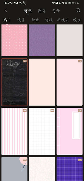 打开软件后,用户可以在资源板块中浏览各类VIP模板,比如在背景库中选择一张精美的VIP背景图。所有VIP素材都标注清晰,方便用户快速找到心仪的内容。