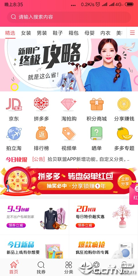 平台包含京东专享、淘抢购、积分商城、拍立淘、热销排行榜、视频种草、用户晒单、拼多多专题等八大核心板块。每个板块都经过精心设计,比如拍立淘支持图片搜索同款比价,视频单提供真实开箱测评,排行榜则根据实时销量数据推荐爆品。这些特色功能相互配合,打造出全方位、立体化的省钱购物体验,满足用户不同场景下的购物需求。