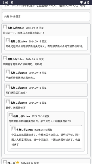 1、内容亮点:相比其他平台,2ch中文网在内容上提供了更多关于2ch论坛的翻译内容,让用户能深入了解日本的网络文化。平台特别设立了"文化解读"专栏,由资深日本文化研究者撰写背景解析,帮助用户更好地理解帖子中的文化梗和特殊用语。