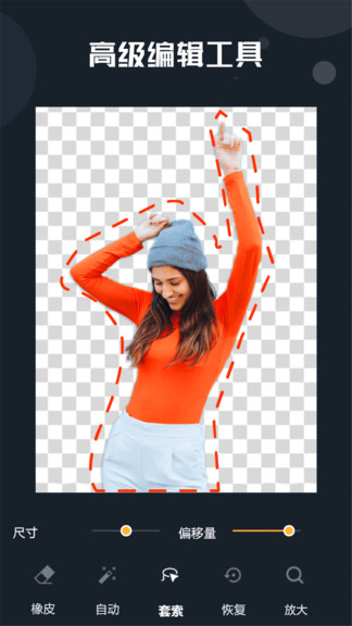 采用类似PS的套索工具,可以精确选择需要保留或删除的区域,实现更专业的抠图效果。