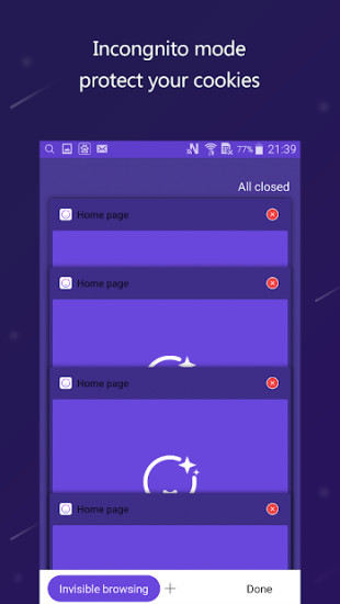 创新的3D卡片式标签页管理,支持手势滑动切换和批量操作。每个标签页都独立运行,避免网页崩溃影响整体使用,最多可同时开启99个页面而不卡顿。