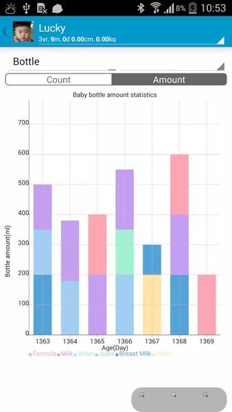 -对比当天和前七天的平均数据,及时发现问题,通过直观的图表展示宝宝成长趋势