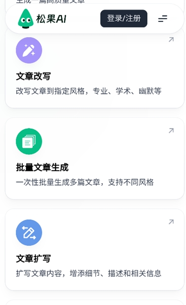松果AI写作是一款基于人工智能技术的创新写作辅助工具,能够帮助用户高效完成各类文本创作。该软件采用先进的自然语言处理算法,支持智能文章生成、内容优化、风格转换等多种实用功能。无论是自媒体运营者、文案策划人员还是普通写作爱好者,都能通过其丰富的模板库和个性化设置,快速产出符合需求的优质内容。软件界面简洁友好,操作流程直观便捷,让写作过程变得轻松愉悦。同时支持多平台同步和云端存储,确保创作内容安全可靠。