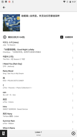 软件还支持离线下载功能,让你在没有网络的情况下也能享受音乐。无论是通勤路上、户外运动,还是网络信号不佳的地区,都可以随时聆听喜欢的歌曲。此外,Listen1App的界面设计简洁美观,操作流畅,即使长时间使用也不会感到疲劳。