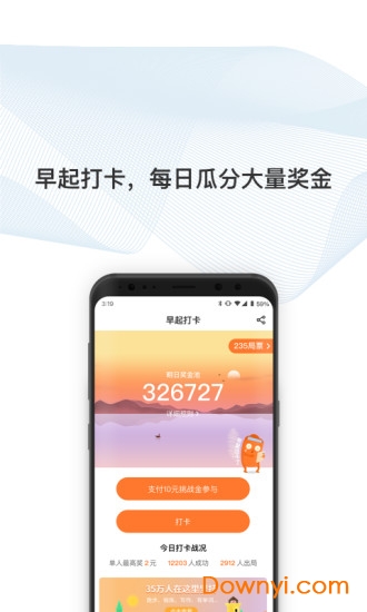早起打卡,每日瓜分大量奖金。每天坚持打卡的用户可共同瓜分由平台提供的丰厚奖金池,打卡人数越多奖金池越丰厚。